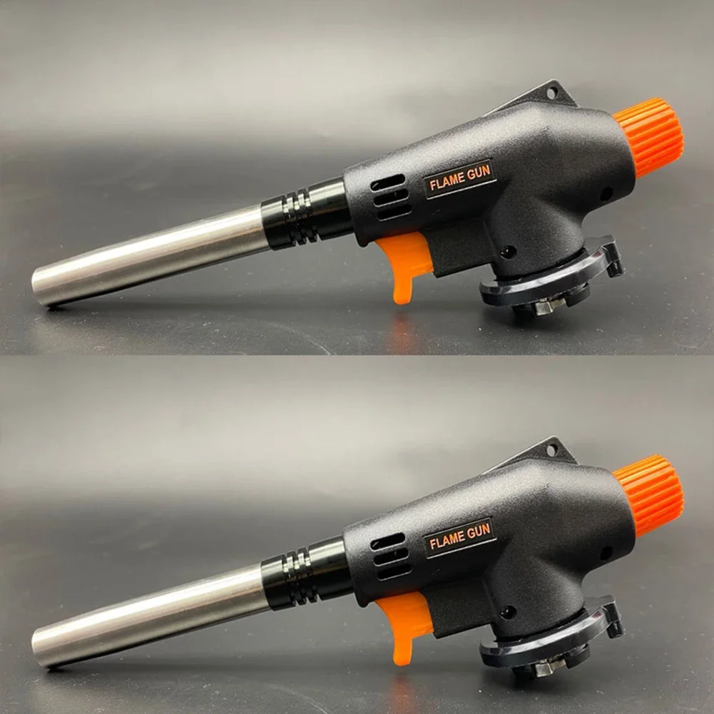 Portable Flame Gun Welding Torch Butane Gas Burner Outdoor Camping BBQ Lighter Heating Ignition Flamethrower Welding Equipment Feature: The temperature can reach 1300℃ to meet various needs, you can choose different flame according to your requirements. Counterclockwise turn the switch, pull the trigger, the flame ejected; Turn the switch clockwise and the flame will go out. Adjust the flame size to concentrate as much or as little flame as needed. Not only can you use it at home, but it's perfect for camping barbecues, cooking, and welding work