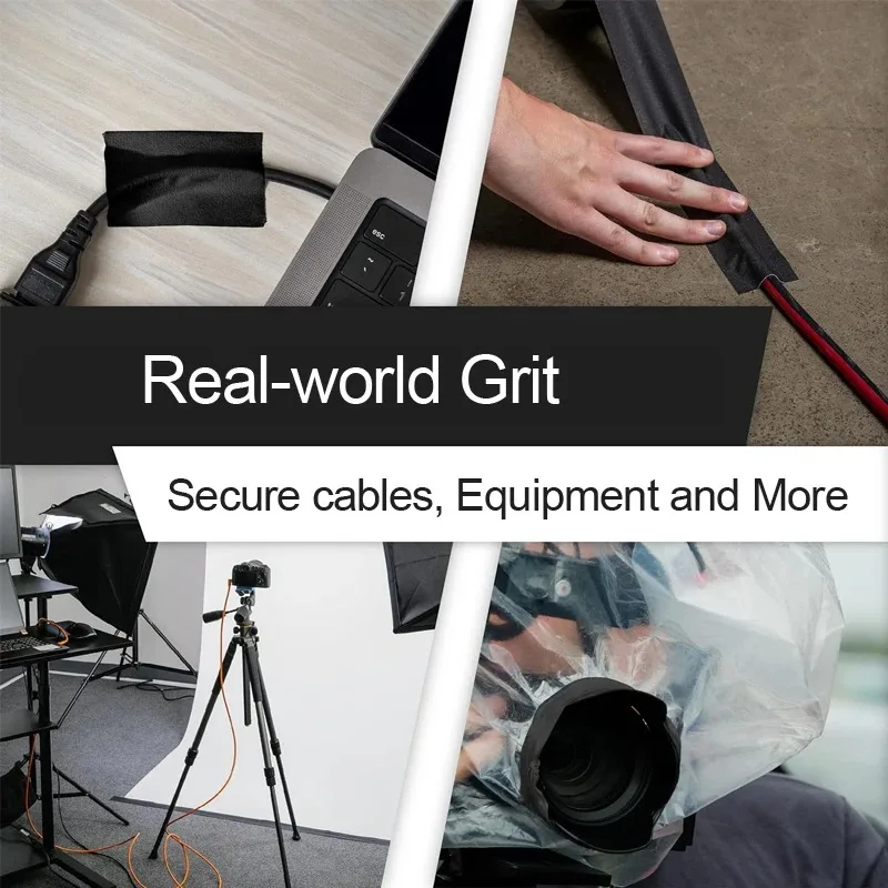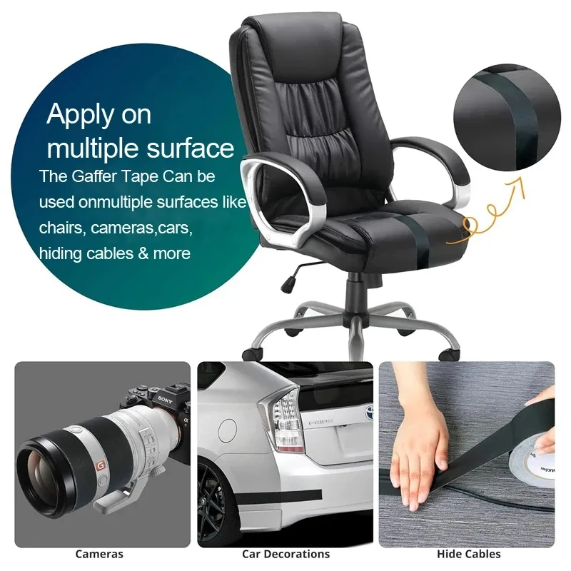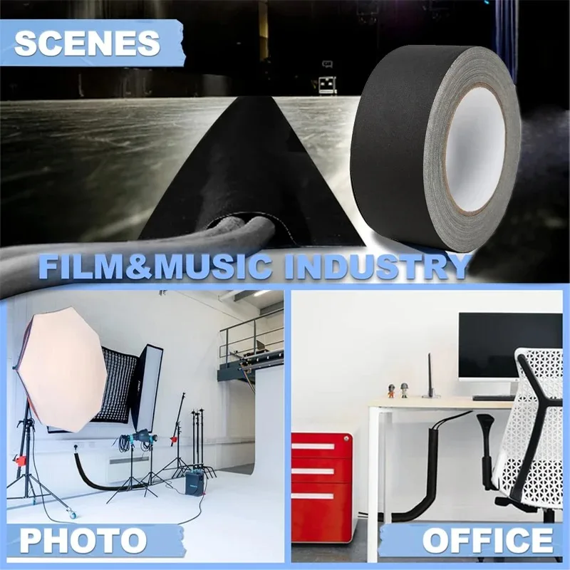 5.Our black gaffer tape can be used as stage tape, tactical tape, and even repair tape for schools, theaters, wire harnesses, and cameras- a must-have gaffe tape for pros